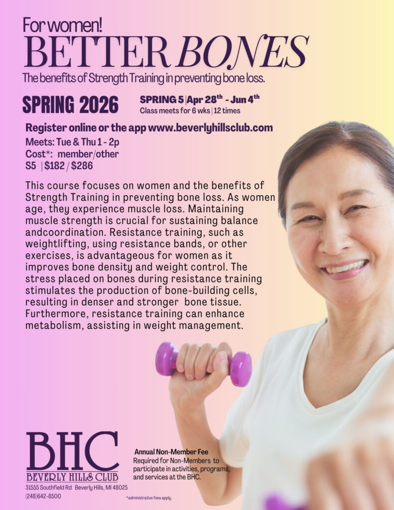 This course focuses on women and the benefits of Strength Training in preventing bone loss. As women age, they experience muscle loss. Maintaining muscle strength is crucial for sustaining balance and coordination. Resistance training, such as weightlifting, using resistance bands, or other exercises, is advantageous for women as it improves bone density and weight control. The stress placed on bones during resistance training stimulates the production of bone-building cells, resulting in denser and stronger bone tissue. Furthermore, resistance training can enhance metabolism, assisting in weight management.